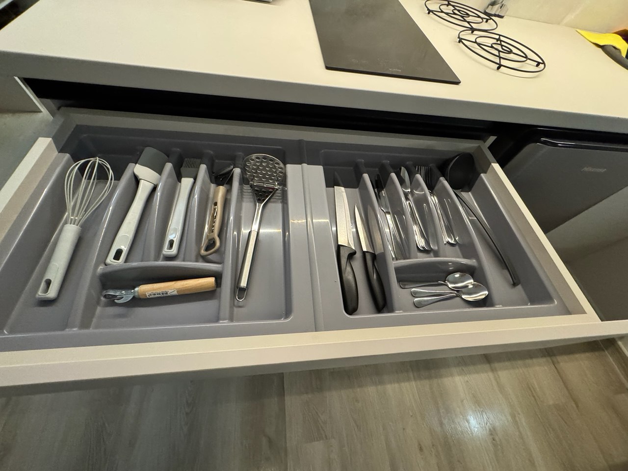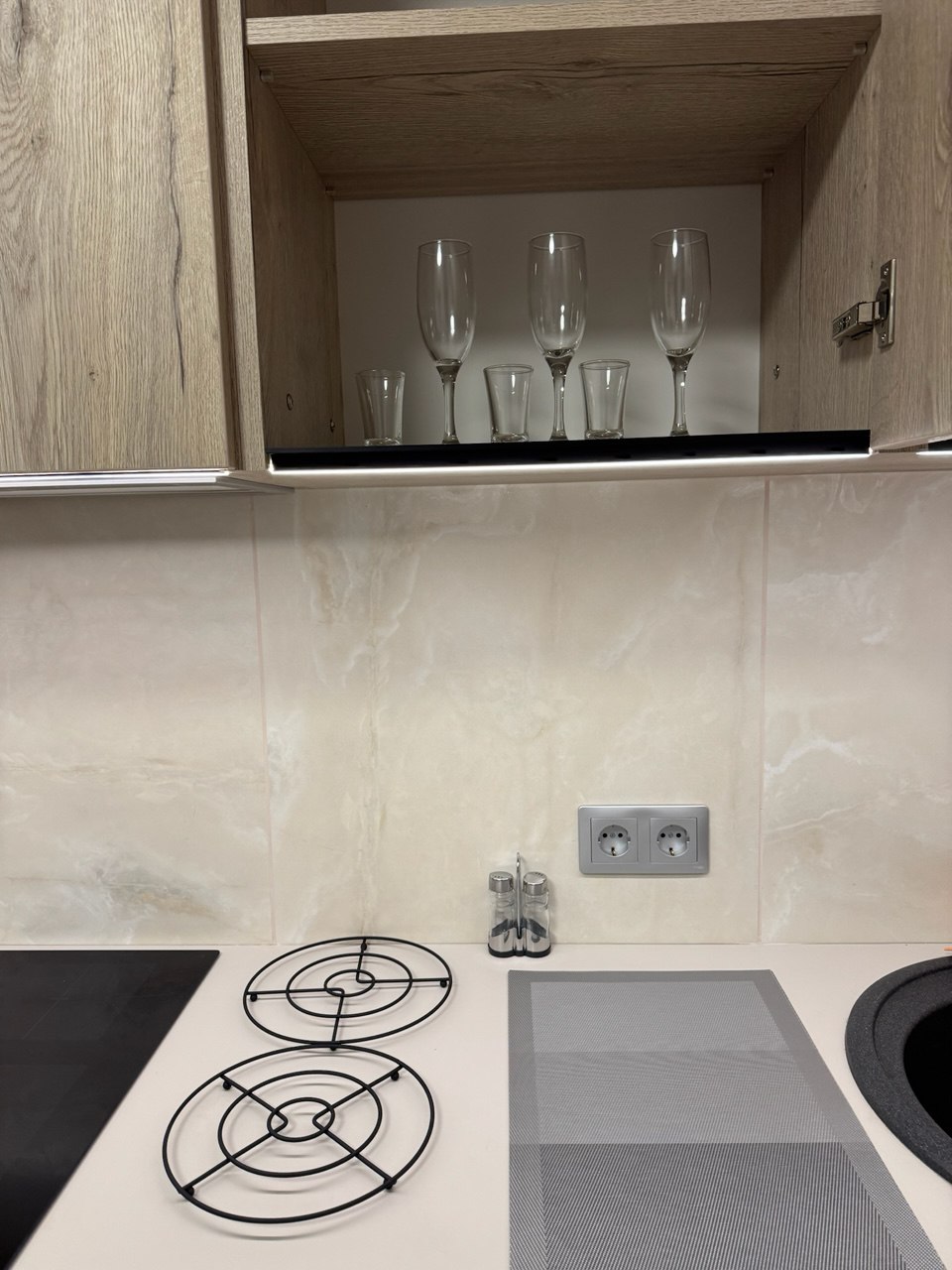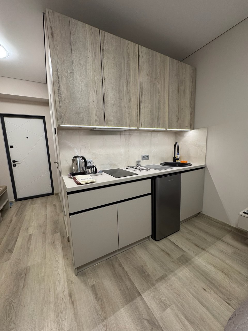 • Повністю облаштована кухня (індукційна плита, холодильник, посуд)